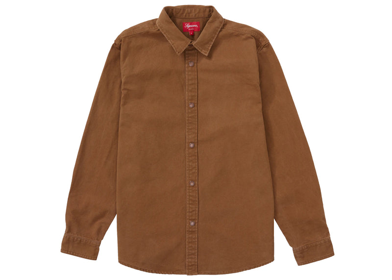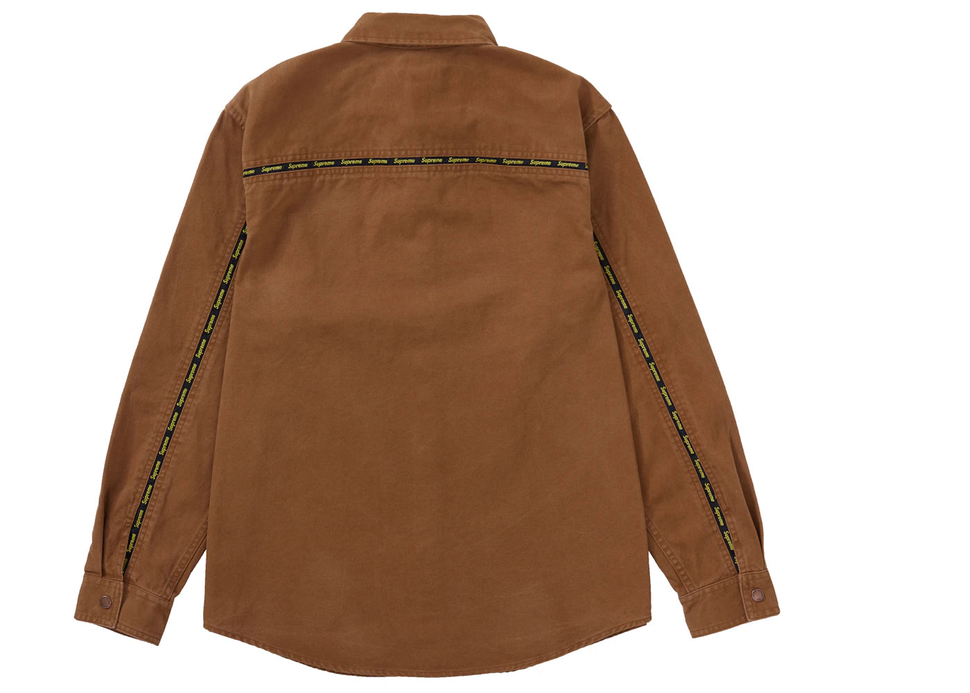 The Supreme Logo Taping Work Shirt Brown is now available at Side Kicks!
