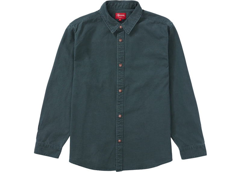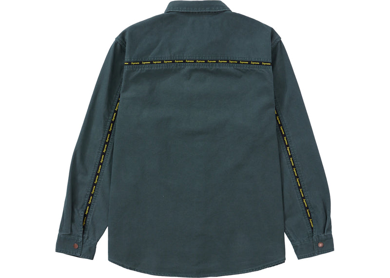 The Supreme Logo Taping Work Shirt Dark Green is now available at Side Kicks!
