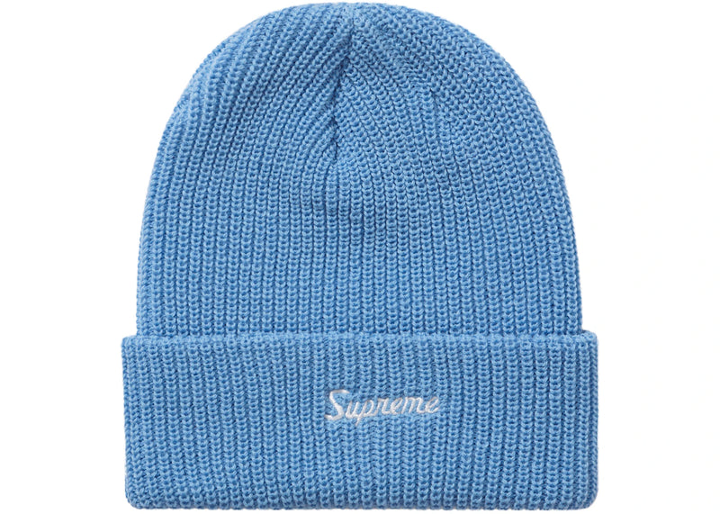 The Supreme Loose Gauge Beanie (FW21) Light Blue is now available at Side Kicks!