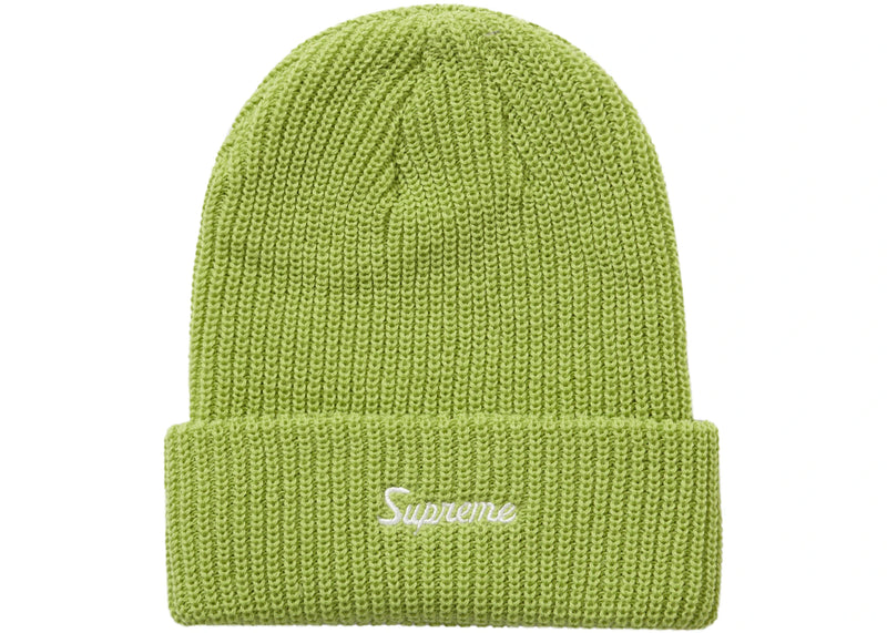 The Supreme Loose Gauge Beanie (FW21) Light Green is now available at Side Kicks!
