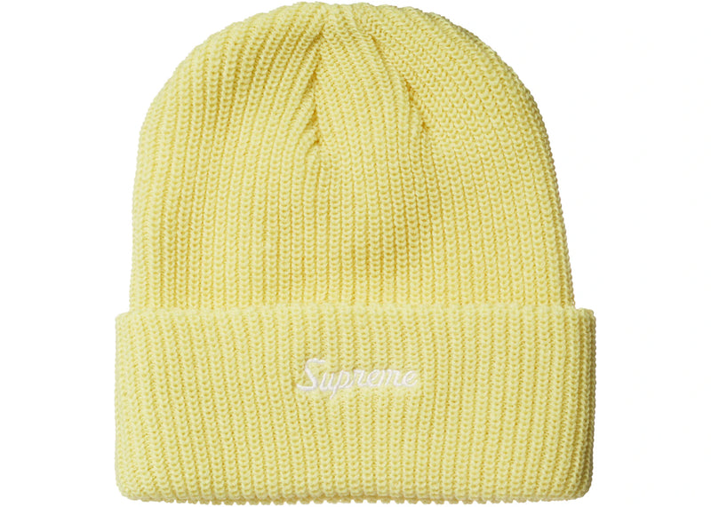 The Supreme Loose Gauge Beanie (FW21) Light Yellow is now available at Side Kicks!