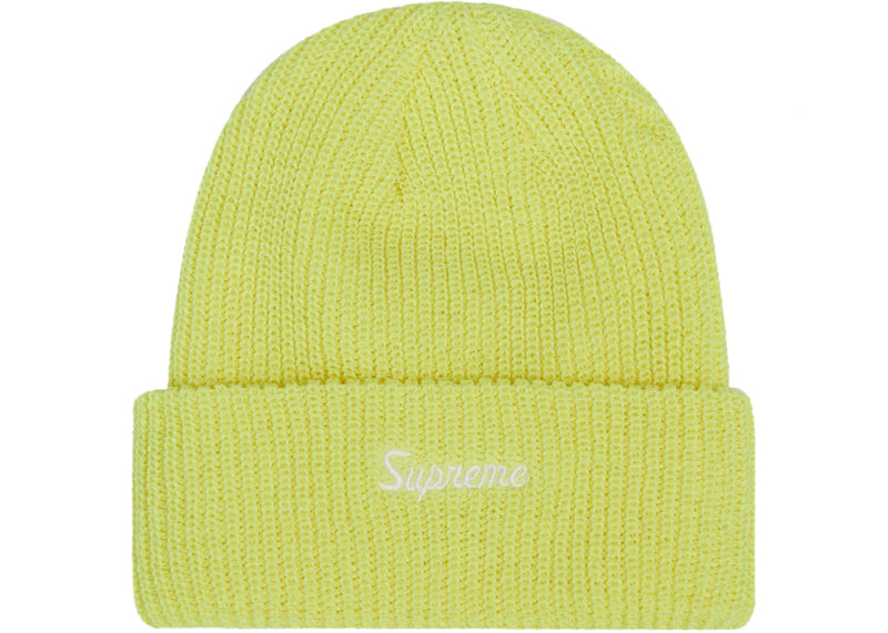 The Supreme Loose Gauge Beanie (SS22) Light Lime is now available at Side Kicks!