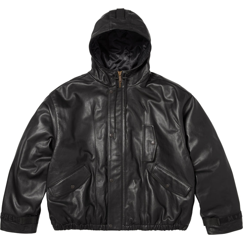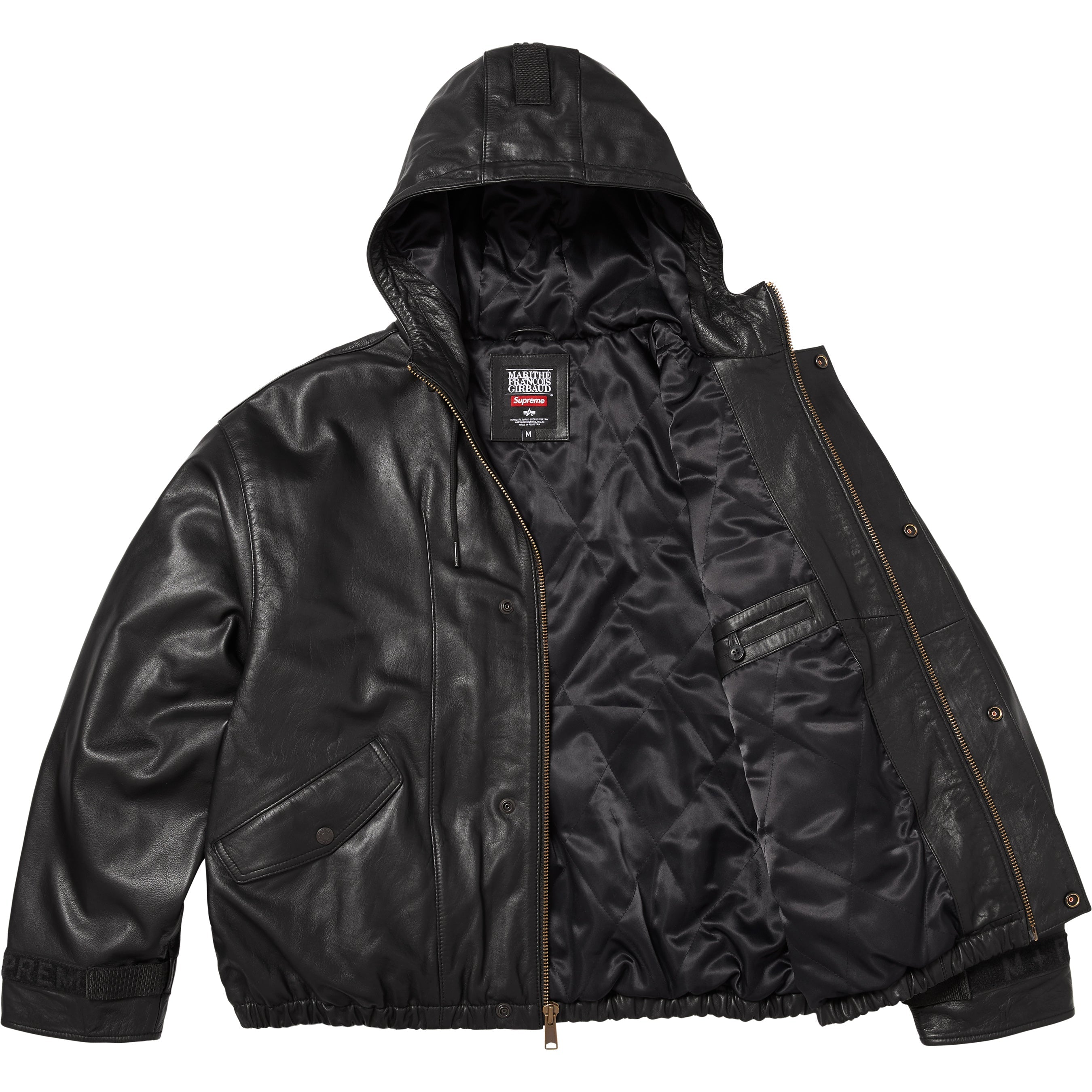 The Supreme / Marithé + François Girbaud Hooded Leather Flight Bomber Jacket - Black is now available at Side Kicks!