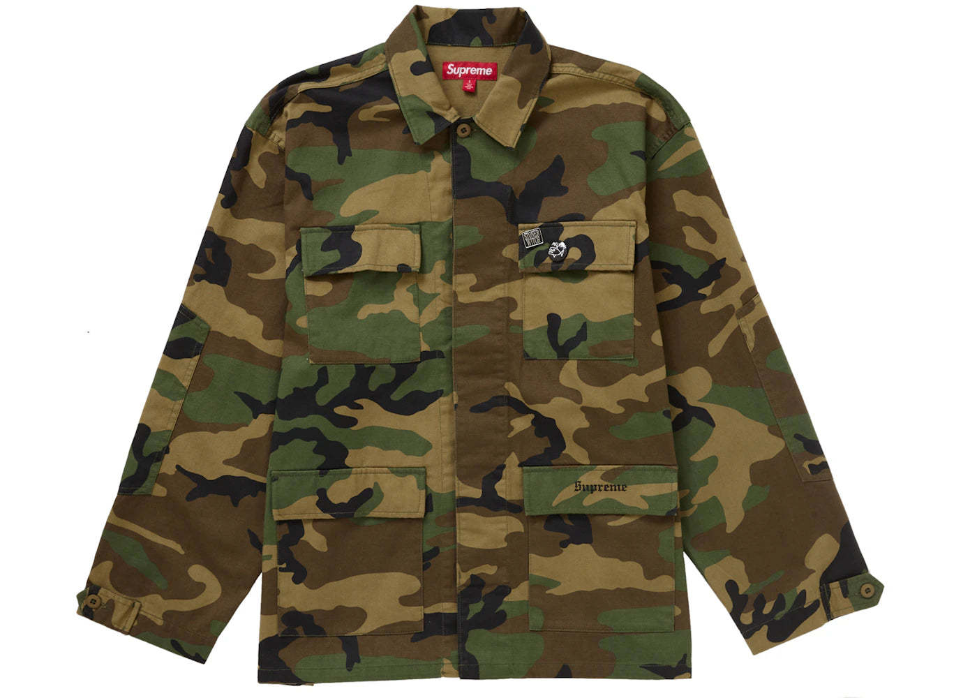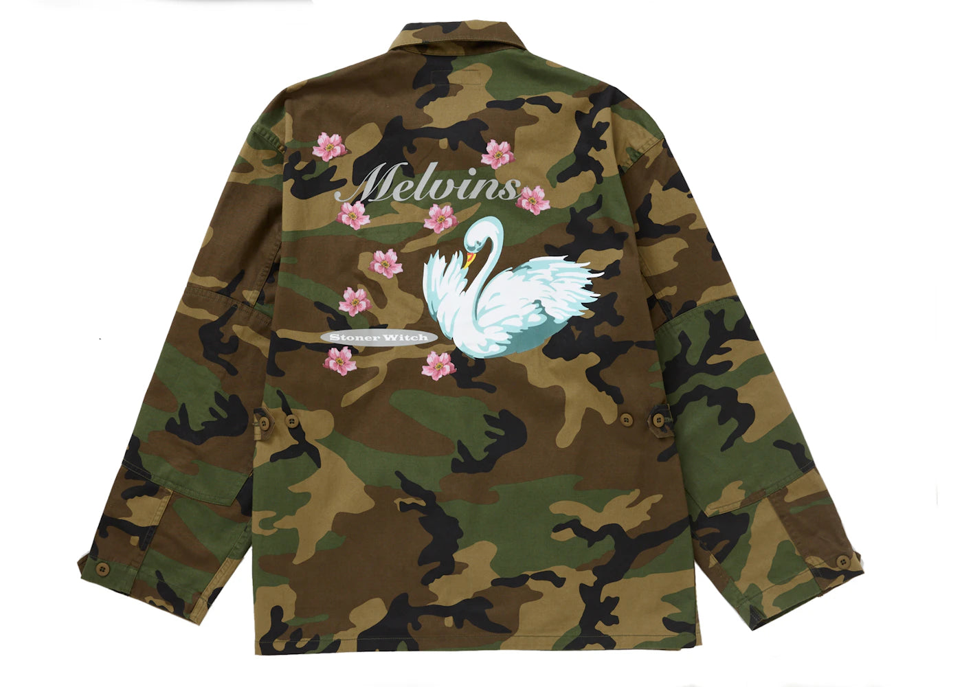 The Supreme Melvins BDU Jacket Woodland Camo is now available at Side Kicks!