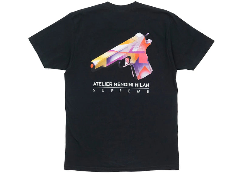 The Supreme Mendini Gun Tee Black is now available at Side Kicks!