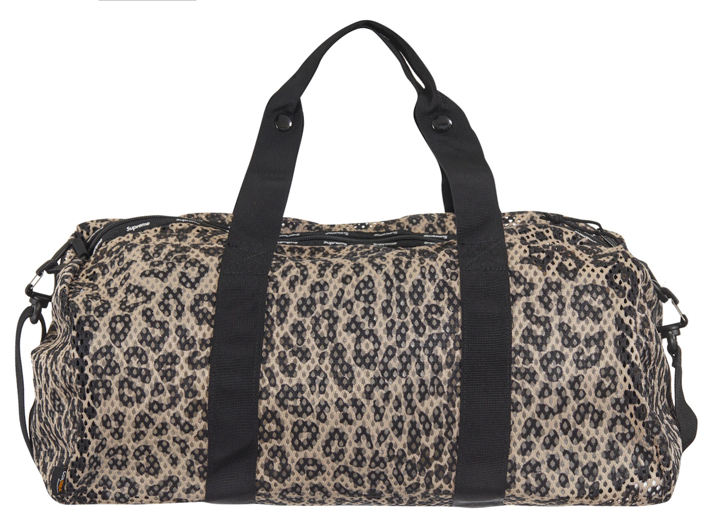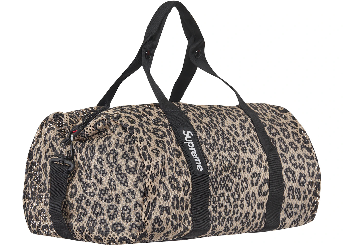 The Supreme Mesh Duffle Bag (SS23) Leopard is now available at Side Kicks!