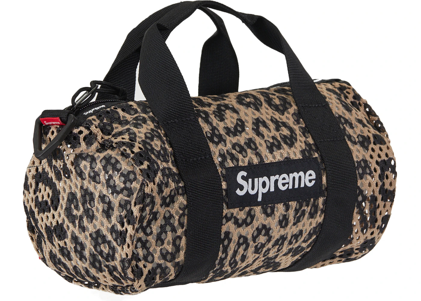The Supreme Mesh Mini Duffle Bag Leopard is now available at Side Kicks!