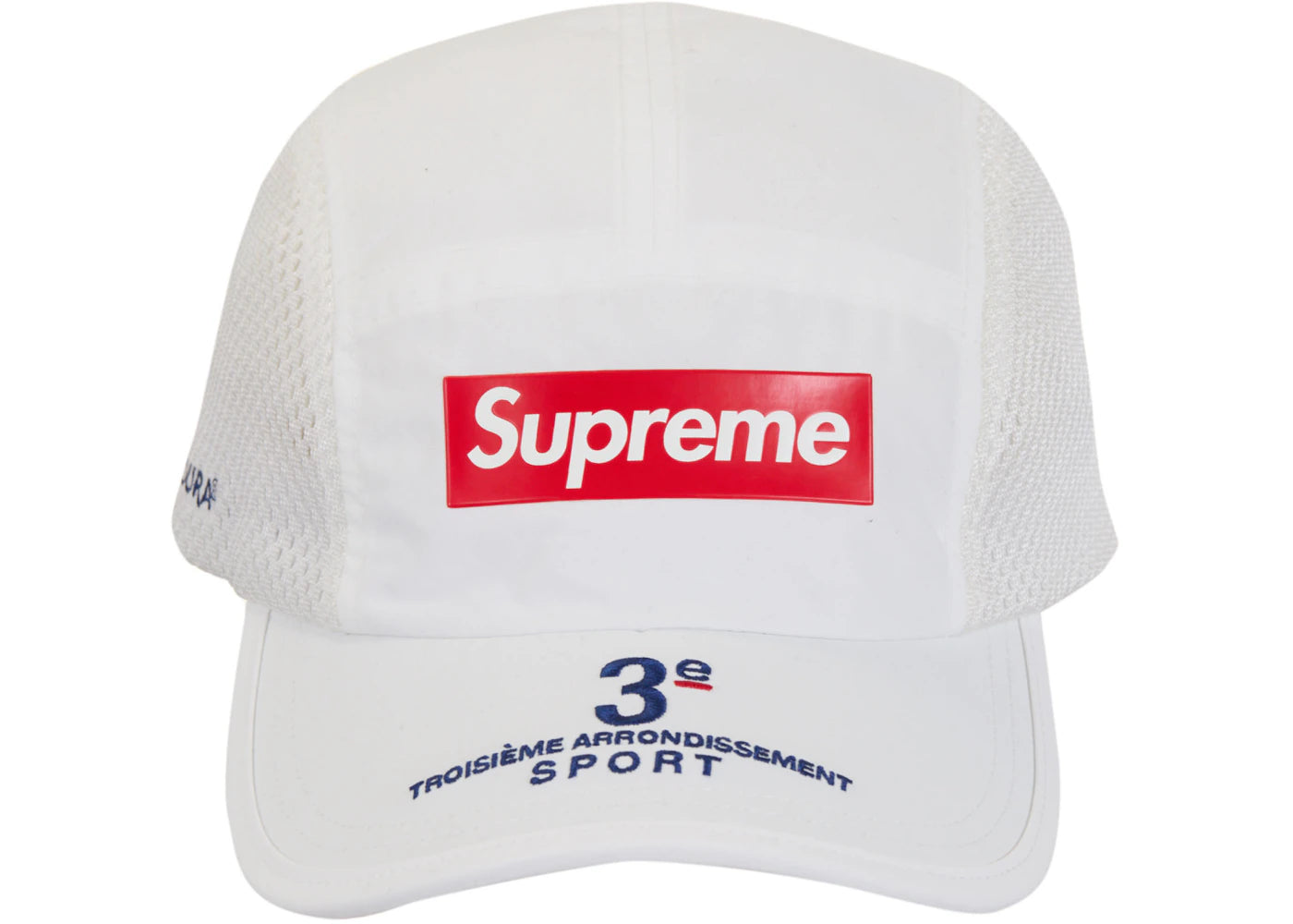 The Supreme Mesh Side Panel Camp Cap (SS24) White is now available at Side Kicks!