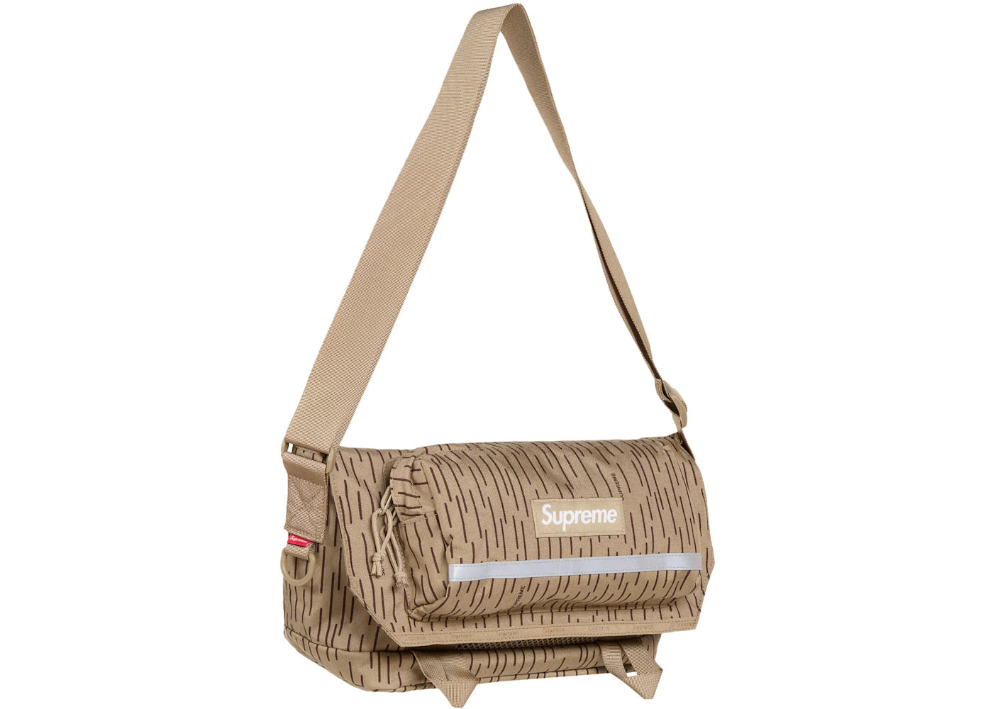 The Supreme Messenger Bag Tan Raindrop is now available at Side Kicks!