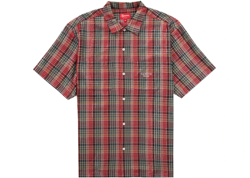 The Supreme Metallic Plaid S/S Shirt Red is now available at Side Kicks!