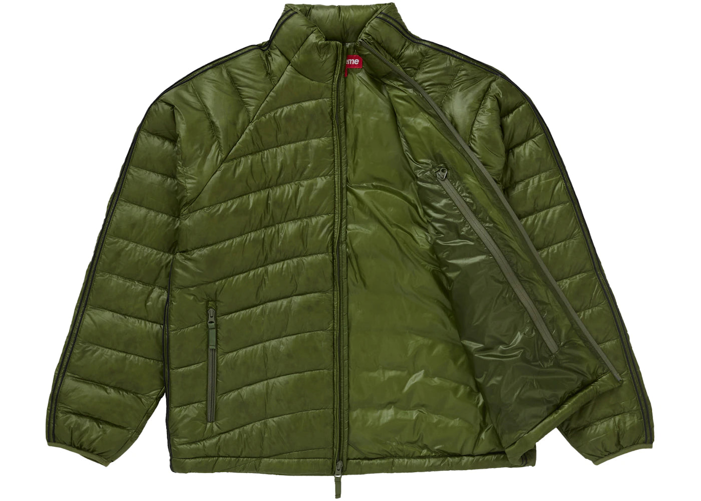 The Supreme Micro Down Jacket Olive is now available at Side Kicks!