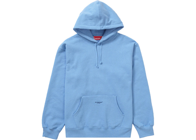 The Supreme Micro Logo Hooded Sweatshirt (SS22) Light Blue is now available at Side Kicks!