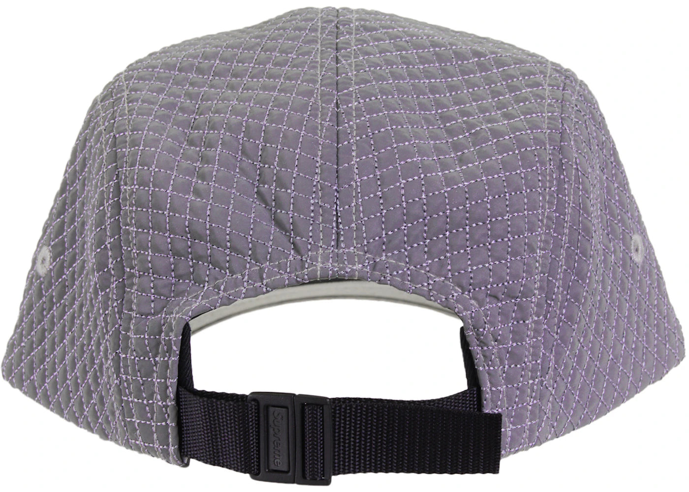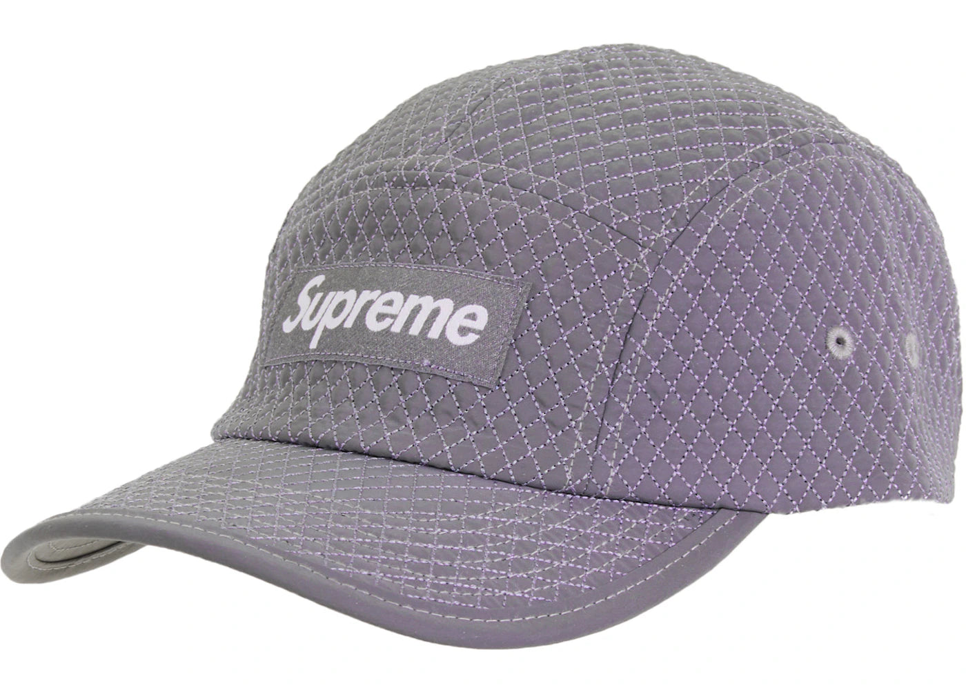 The Supreme Micro Quilted Camp Cap Reflective is now available at Side Kicks!