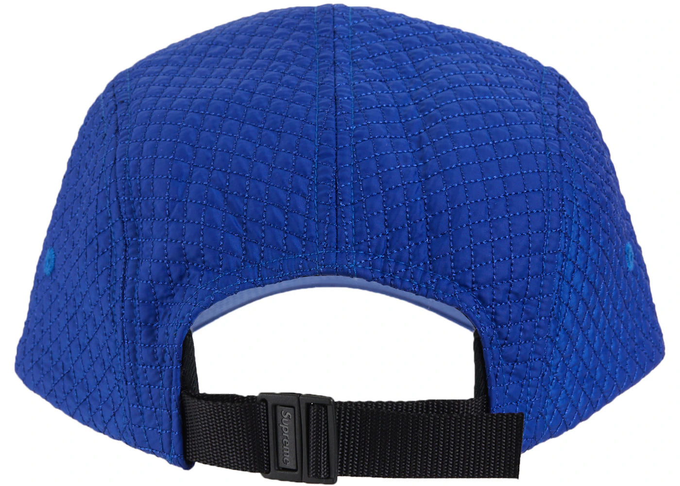 The Supreme Micro Quilted Camp Cap Royal is now available at Side Kicks!