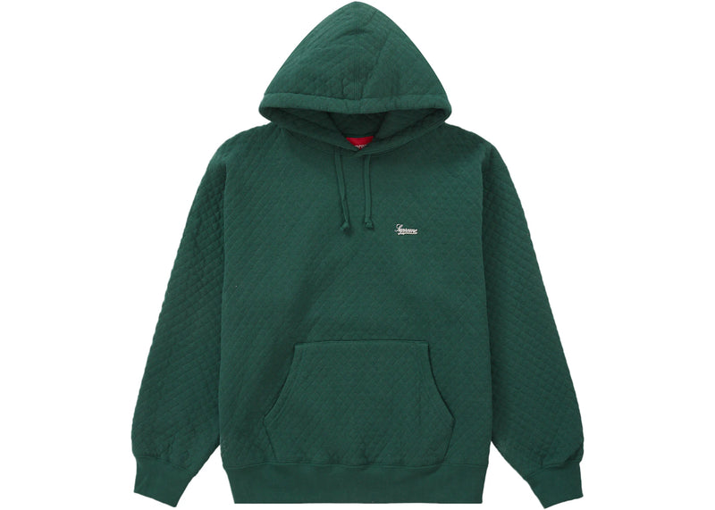 The Supreme Micro Quilted Hooded Sweatshirt Dark Pine is now available at Side Kicks!