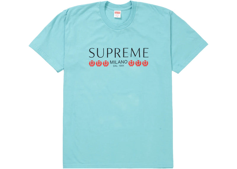 The Supreme Milano Tee Light Teal is now available at Side Kicks!