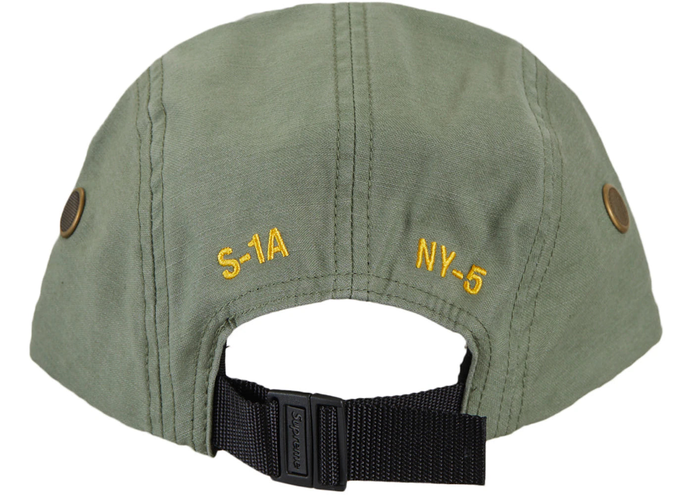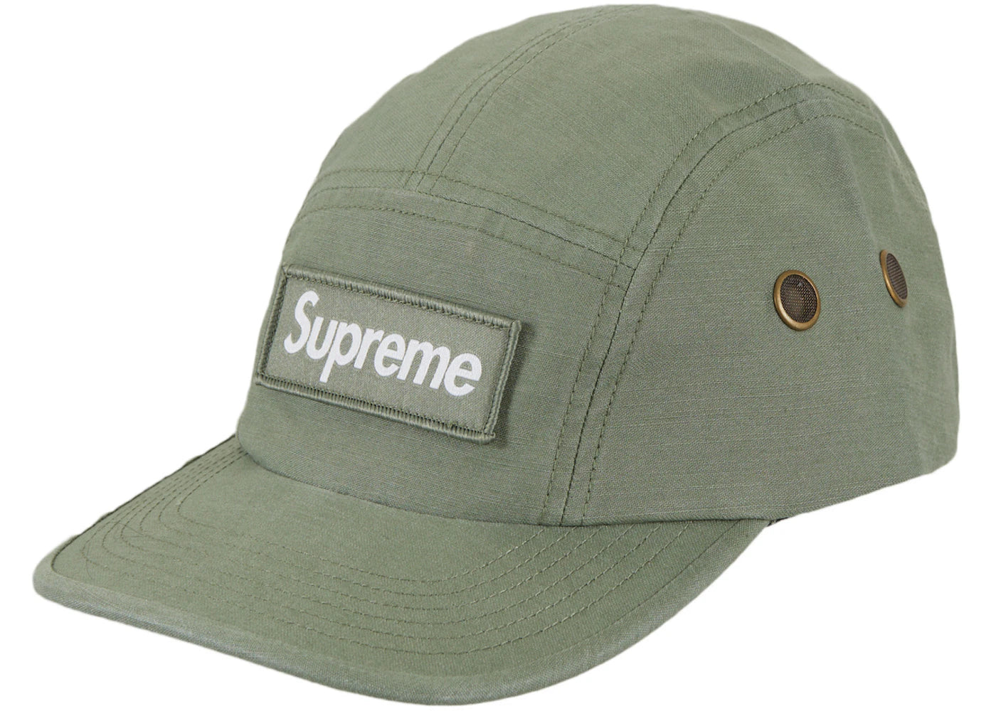 The Supreme Military Camp Cap (FW23) Olive is now available at Side Kicks!
