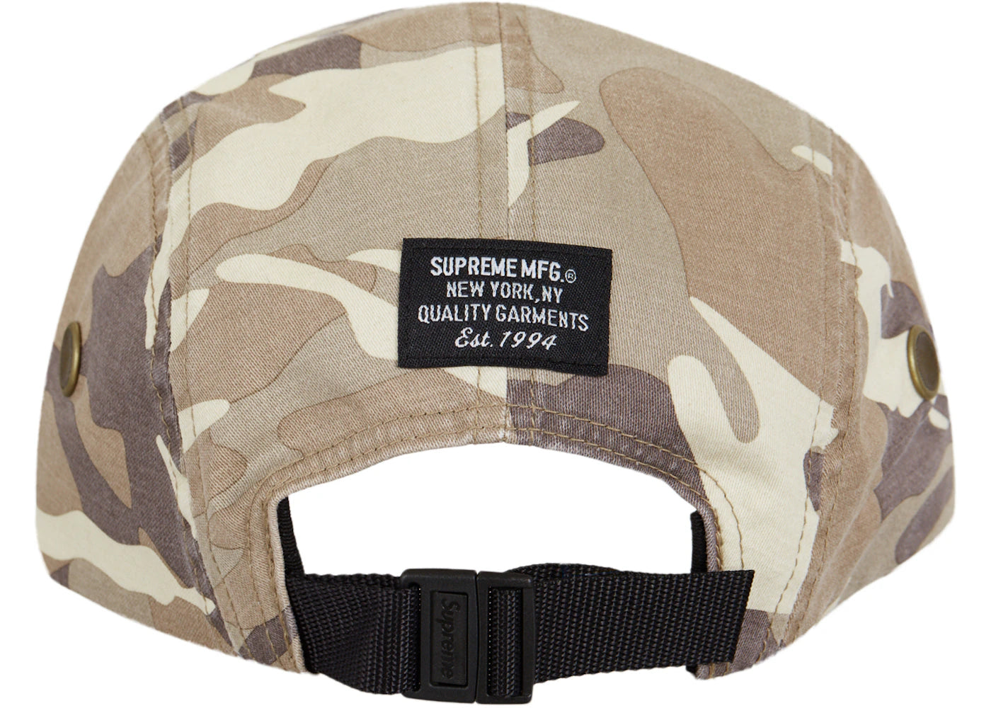 The Supreme Military Camp Cap (SS23) Stone Camo is now available at Side Kicks!