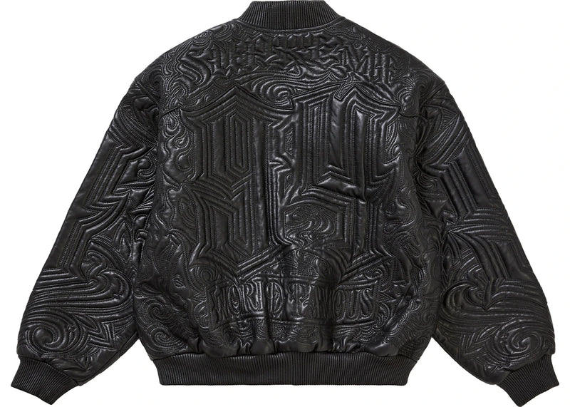 Supreme Mister Cartoon Embroidered Leather Jacket Black