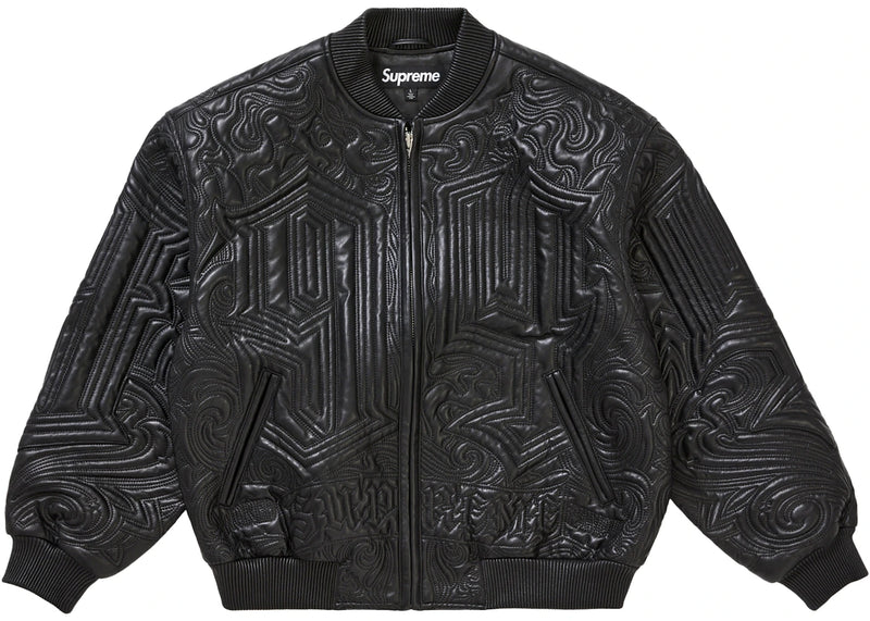 The Supreme Mister Cartoon Embroidered Leather Jacket Black is now available at Side Kicks!