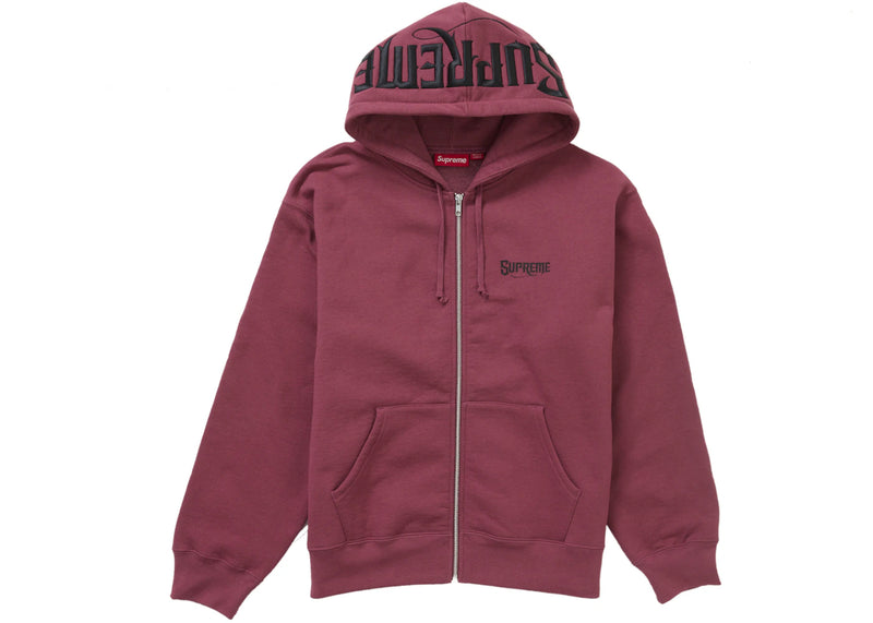 The Supreme Mister Cartoon Zip Up Hooded Sweatshirt Dark Red is now available at Side Kicks!
