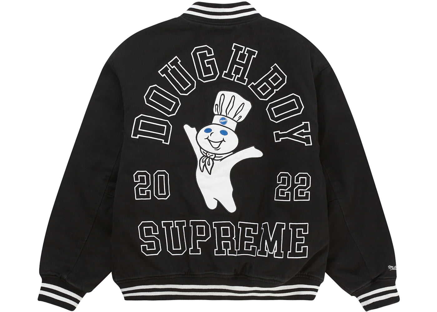 The Supreme Mitchell & Ness Doughboy Twill Varsity Jacket Black is now available at Side Kicks!