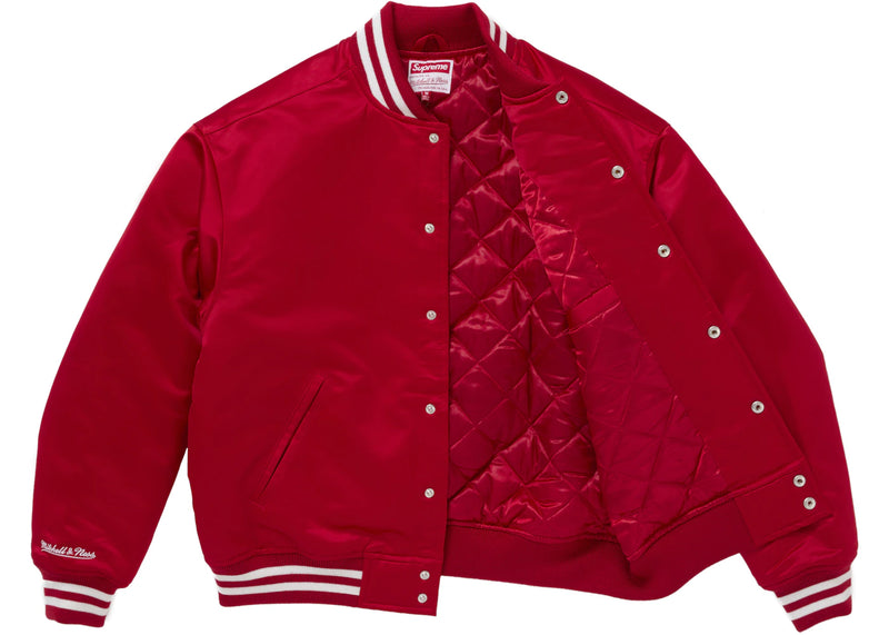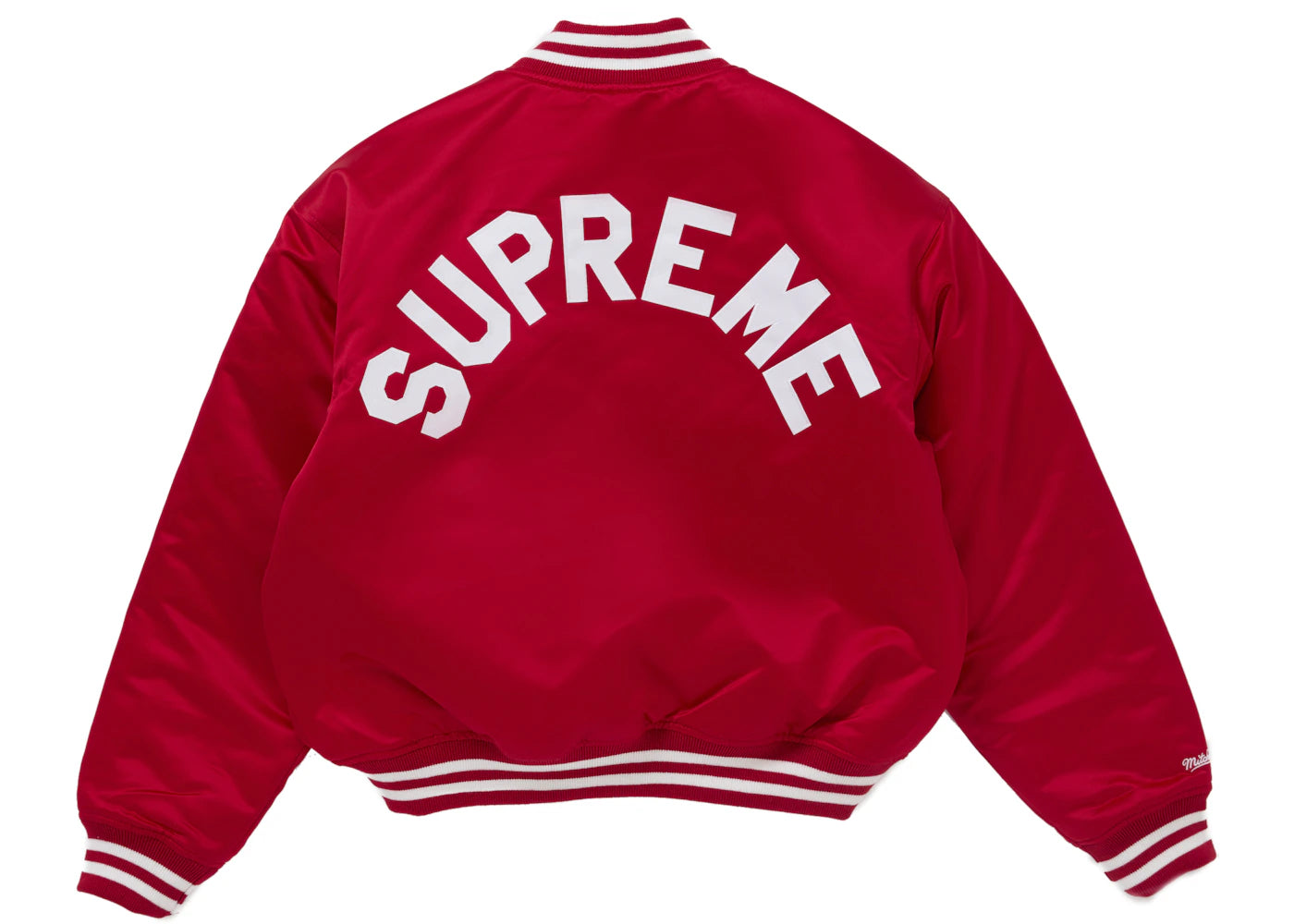 Supreme Mitchell & Ness Satin Varsity Jacket (FW24) Red