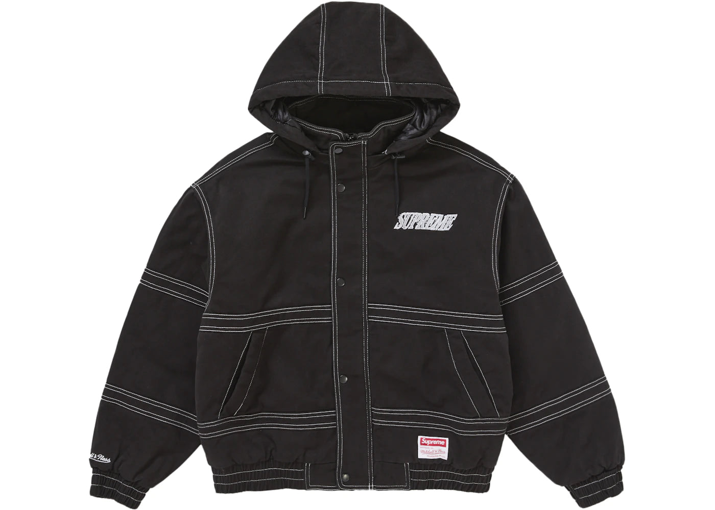 The Supreme Mitchell & Ness Twill Stadium Jacket Black is now available at Side Kicks!