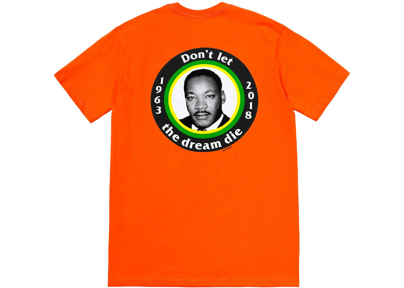 The Supreme MLK Dream Tee Orange is now available at Side Kicks!
