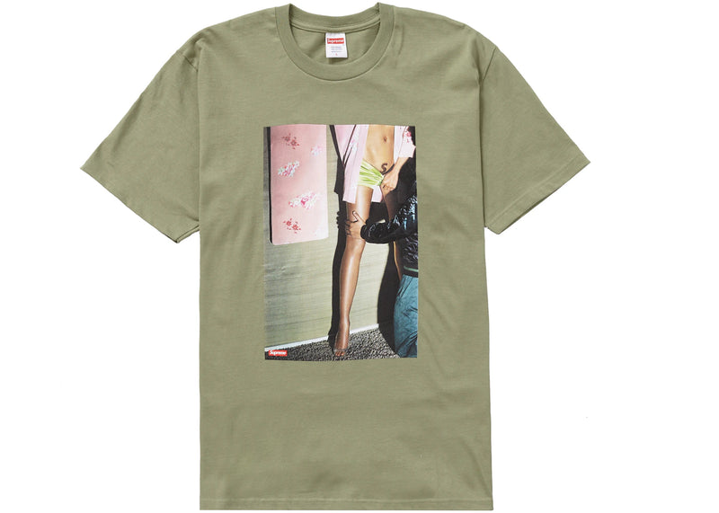 The Supreme Model Tee Light Olive is now available at Side Kicks!
