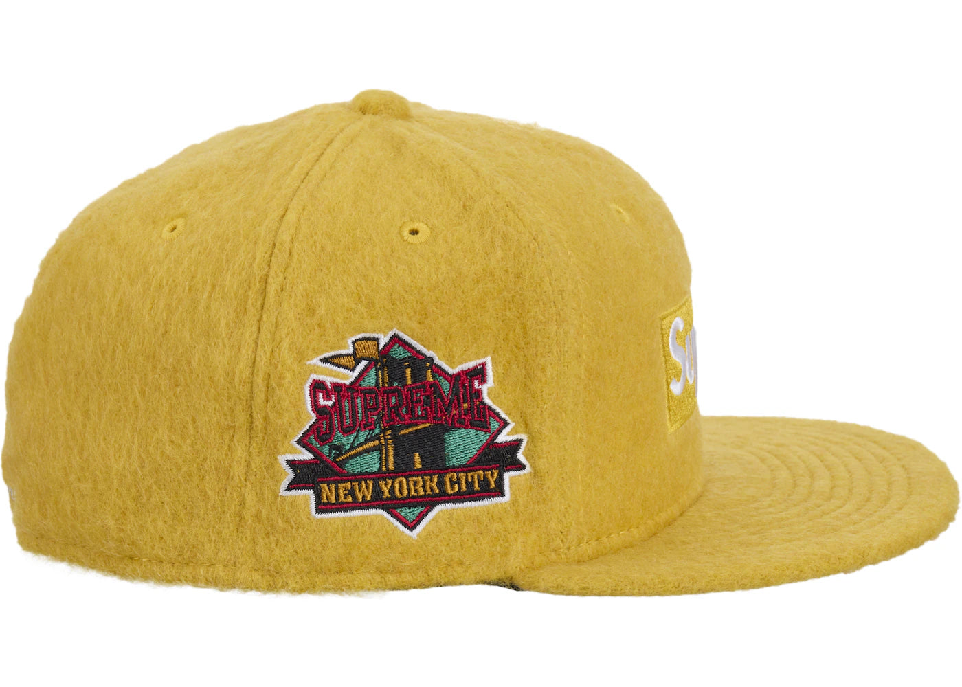 The Supreme Mohair Box Logo New Era Cap Dark Yellow is now available at Side Kicks!