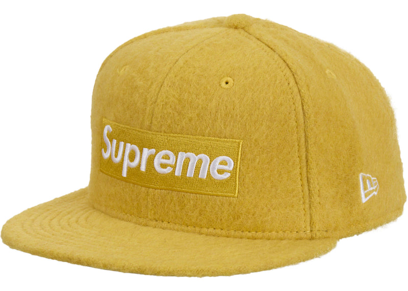The Supreme Mohair Box Logo New Era Dark Yellow is now available at Side Kicks!