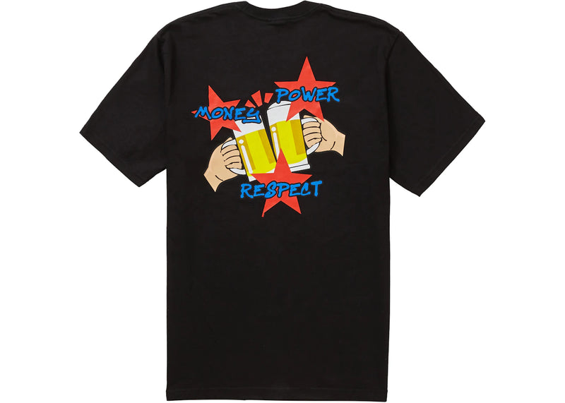 The Supreme Money Power Respect Tee features "Money, Power, Respect" printed in an anime-inspired style on the back. It released in eight color options as part of the FW19 Week...