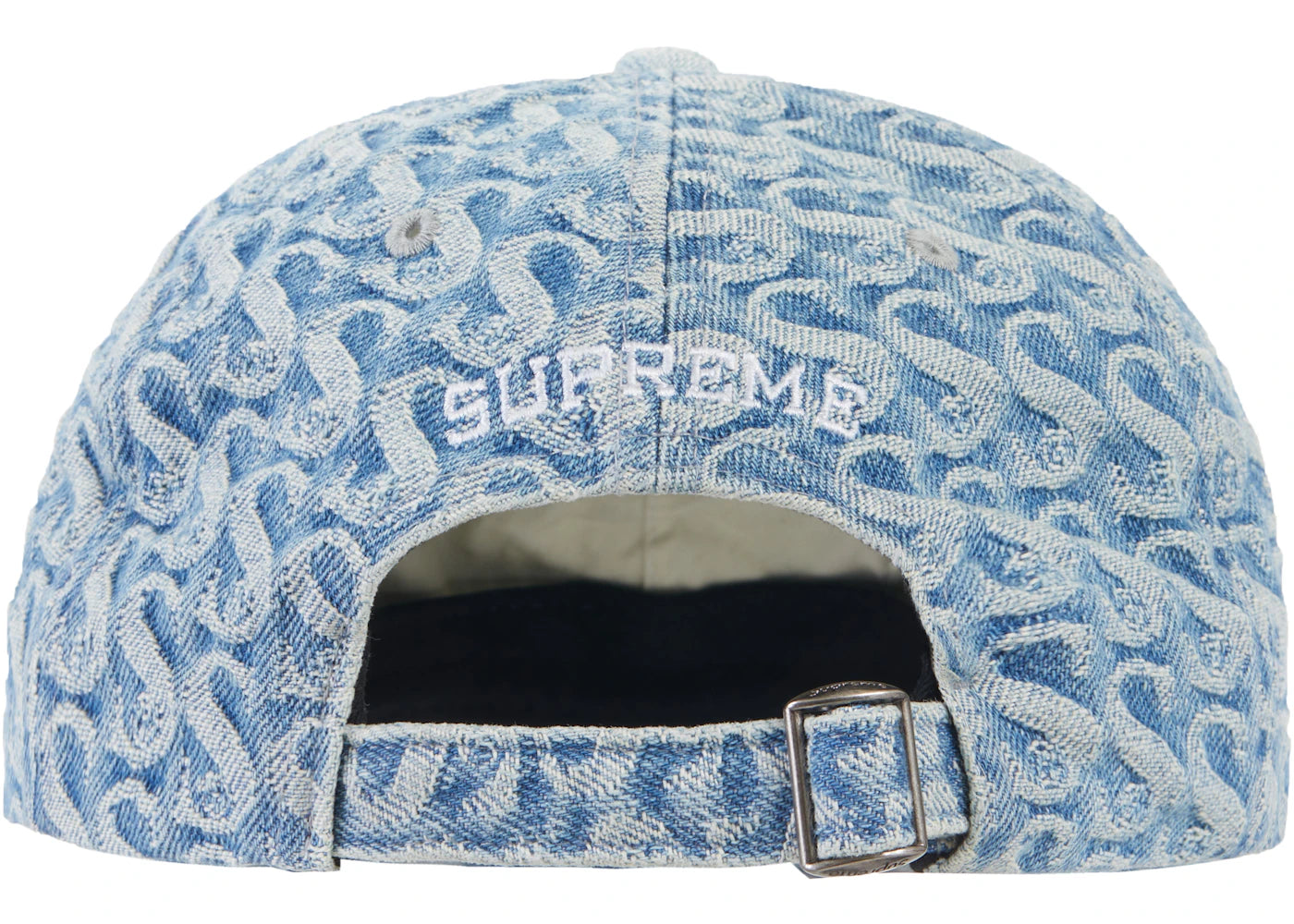 The Supreme Monogram Denim 6-Panel Blue is now available at Side Kicks!