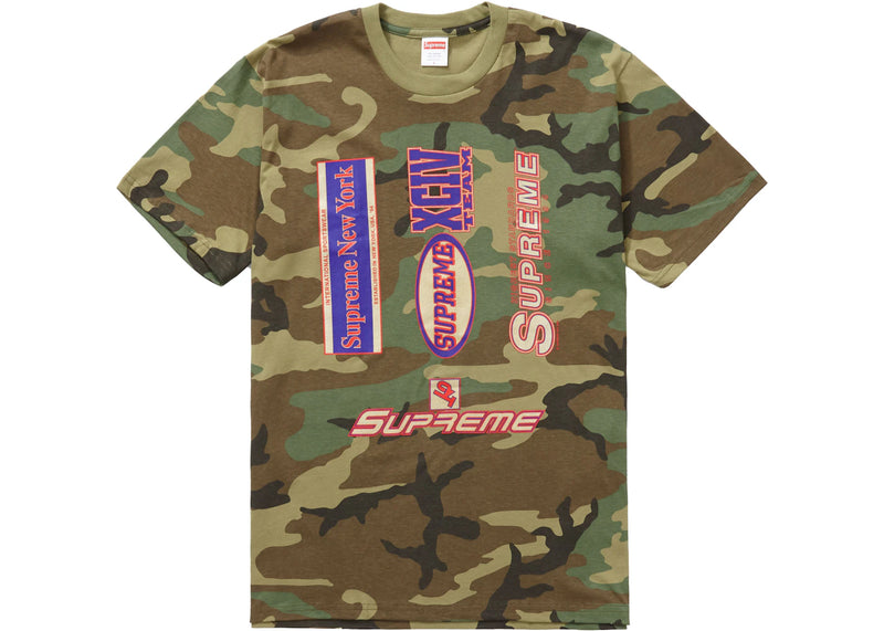 The Supreme Multi Logos Tee Woodland Camo is now available at Side Kicks!
