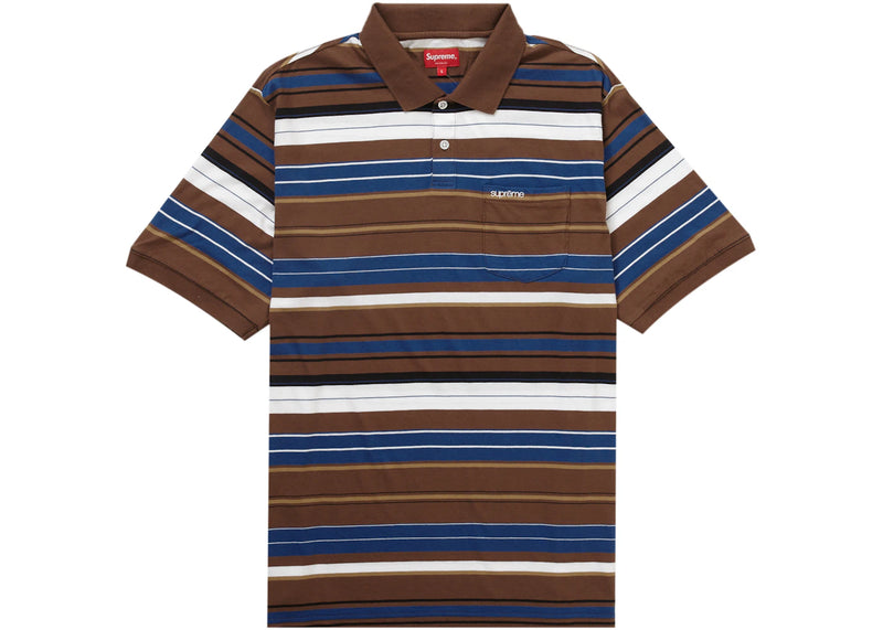 The Supreme Multi Stripe Polo Brown is now available at Side Kicks!