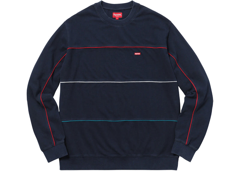 The Supreme Multicolor Piping Pique Crewneck Navy is now available at Side Kicks!