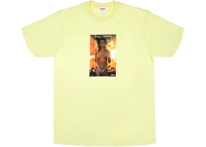 The Supreme Nan Goldin Kim in Rhinestone Tee Pale Yellow is now available at Side Kicks!