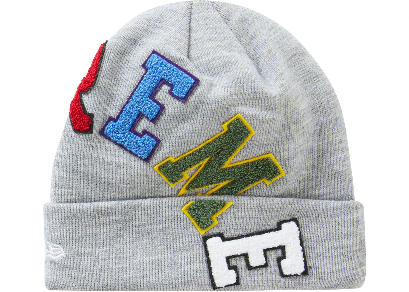 The Supreme New Era Big Arc Beanie Heather Grey features a large embroidered logo on a classic heather grey knit. Made for cold weather, it combines warmth with streetwear style....