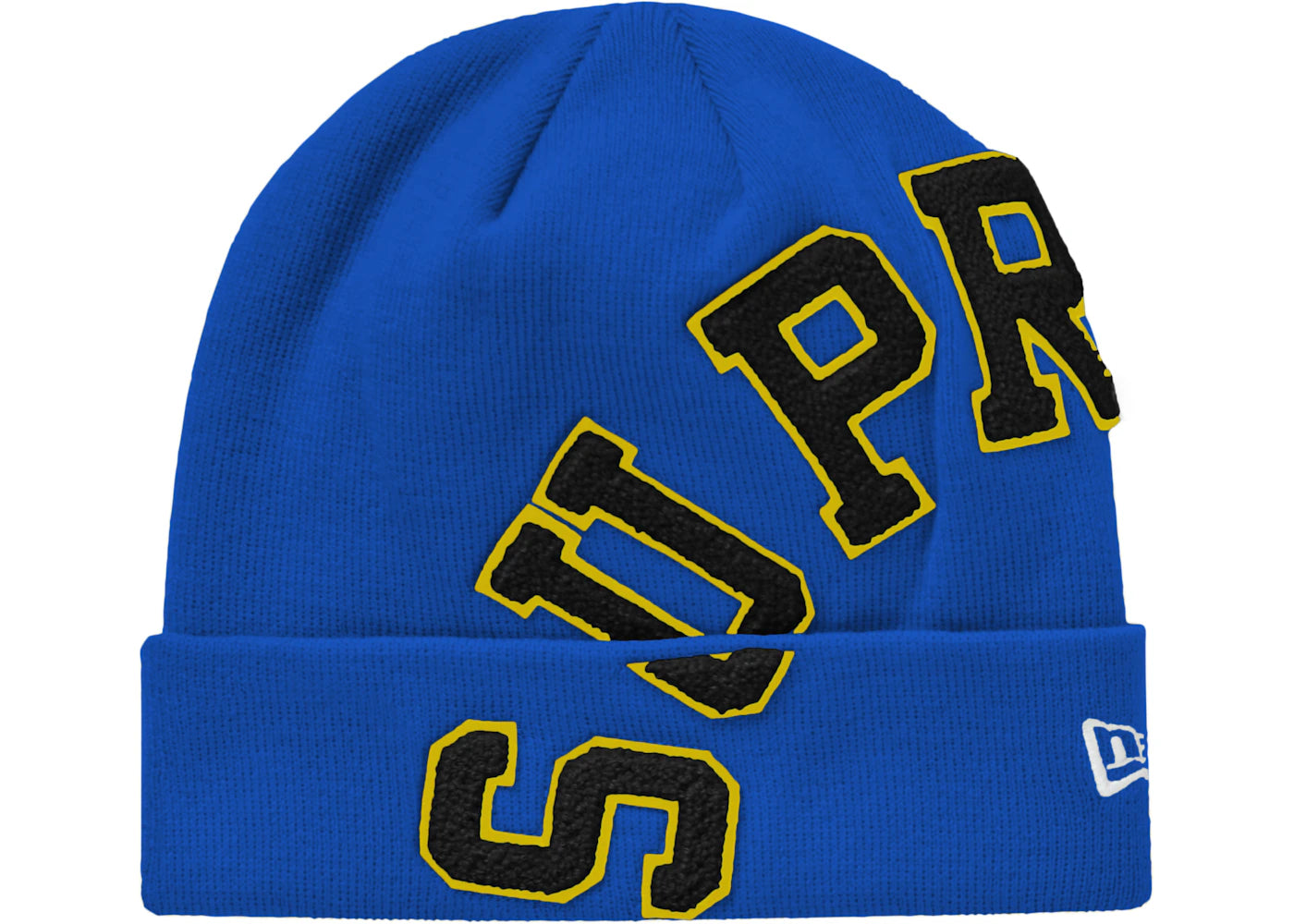 The Supreme New Era Big Arc Beanie Pale Royal is now available at Side Kicks!