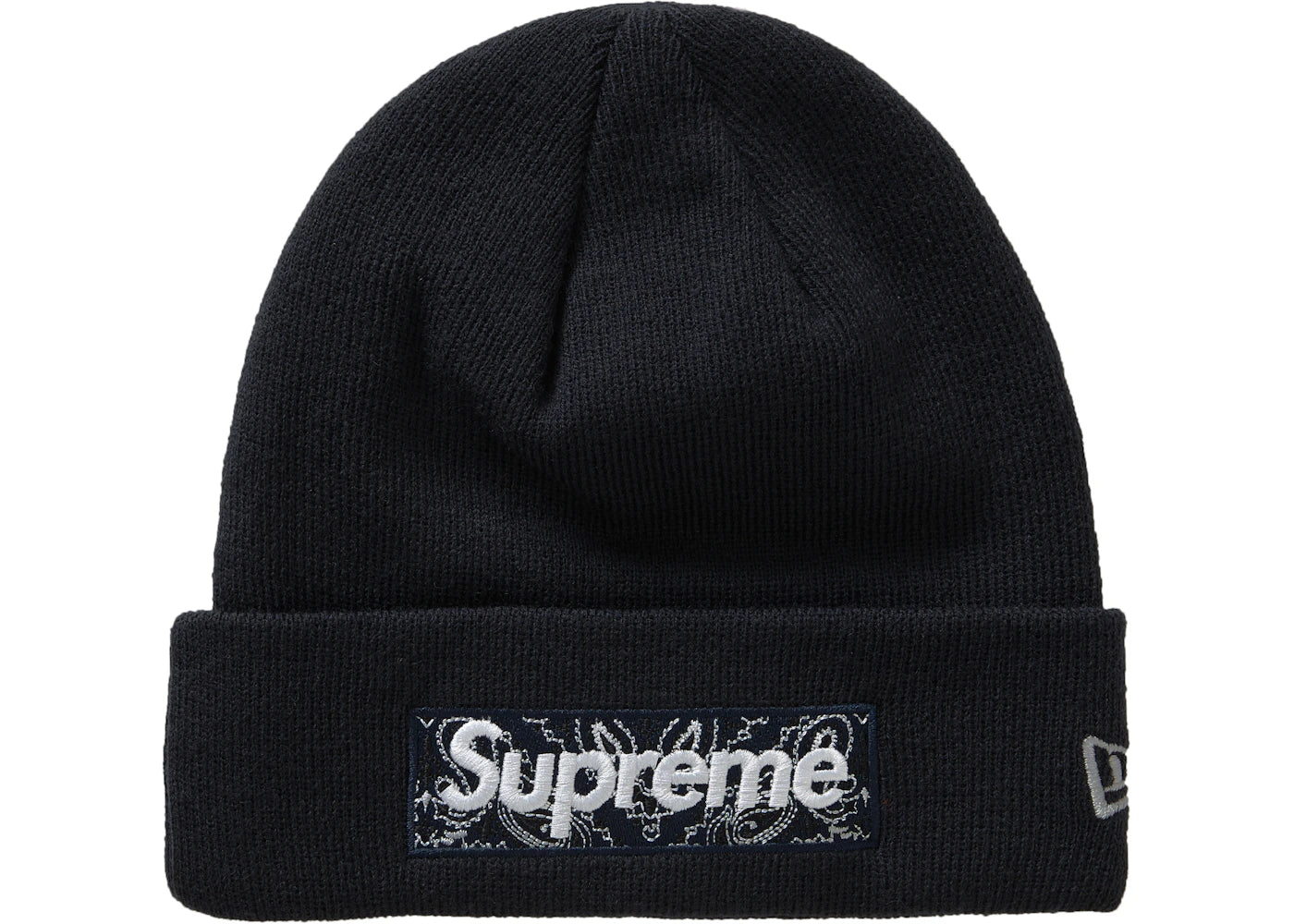The Supreme Box Logo Beanie features a unique bandana-style logo design. It comes in eight colorways, with seven matching the beanie's base color and one contrasting blue-on-grey option. The beanie...