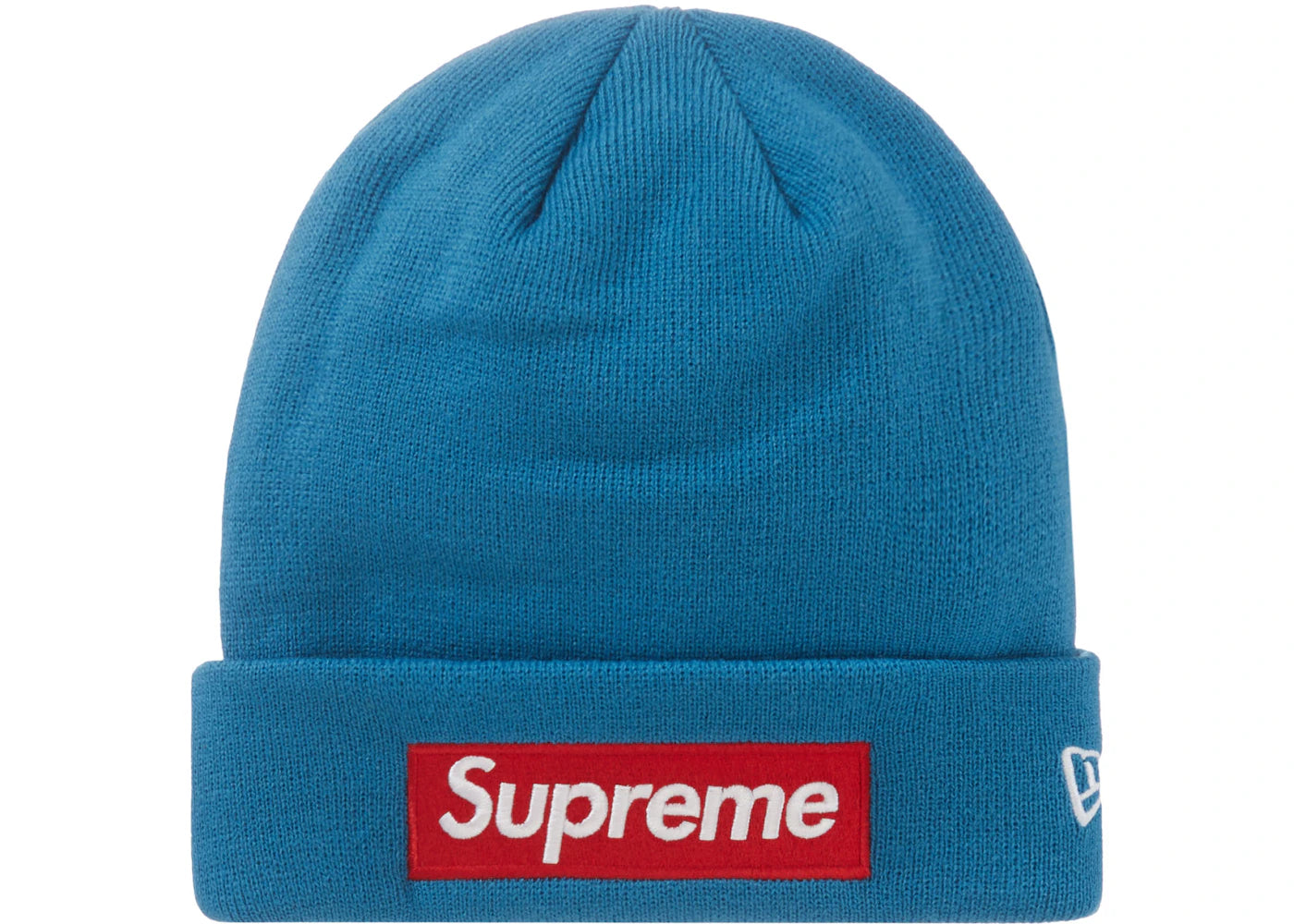 The Blue Supreme New Era Box Logo Beanie (FW22) features a soft acrylic knit construction for warmth and comfort. It comes in a vibrant blue hue with the iconic Supreme...