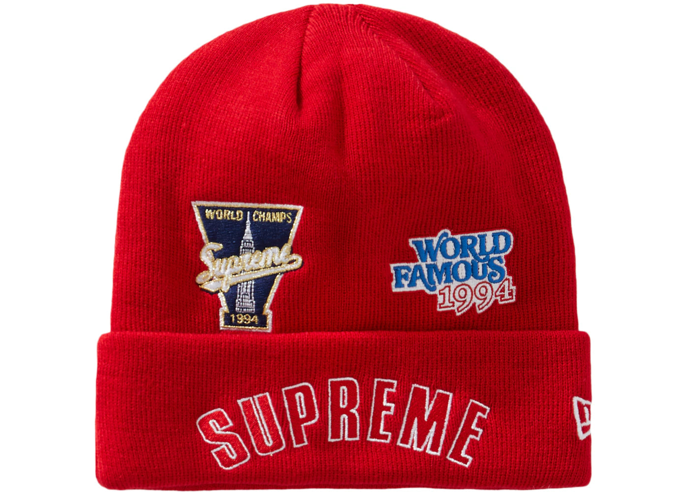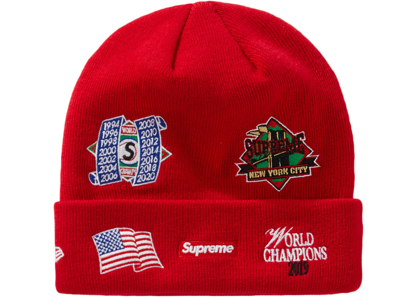 The Supreme New Era Championship Beanie Red is now available at Side Kicks!