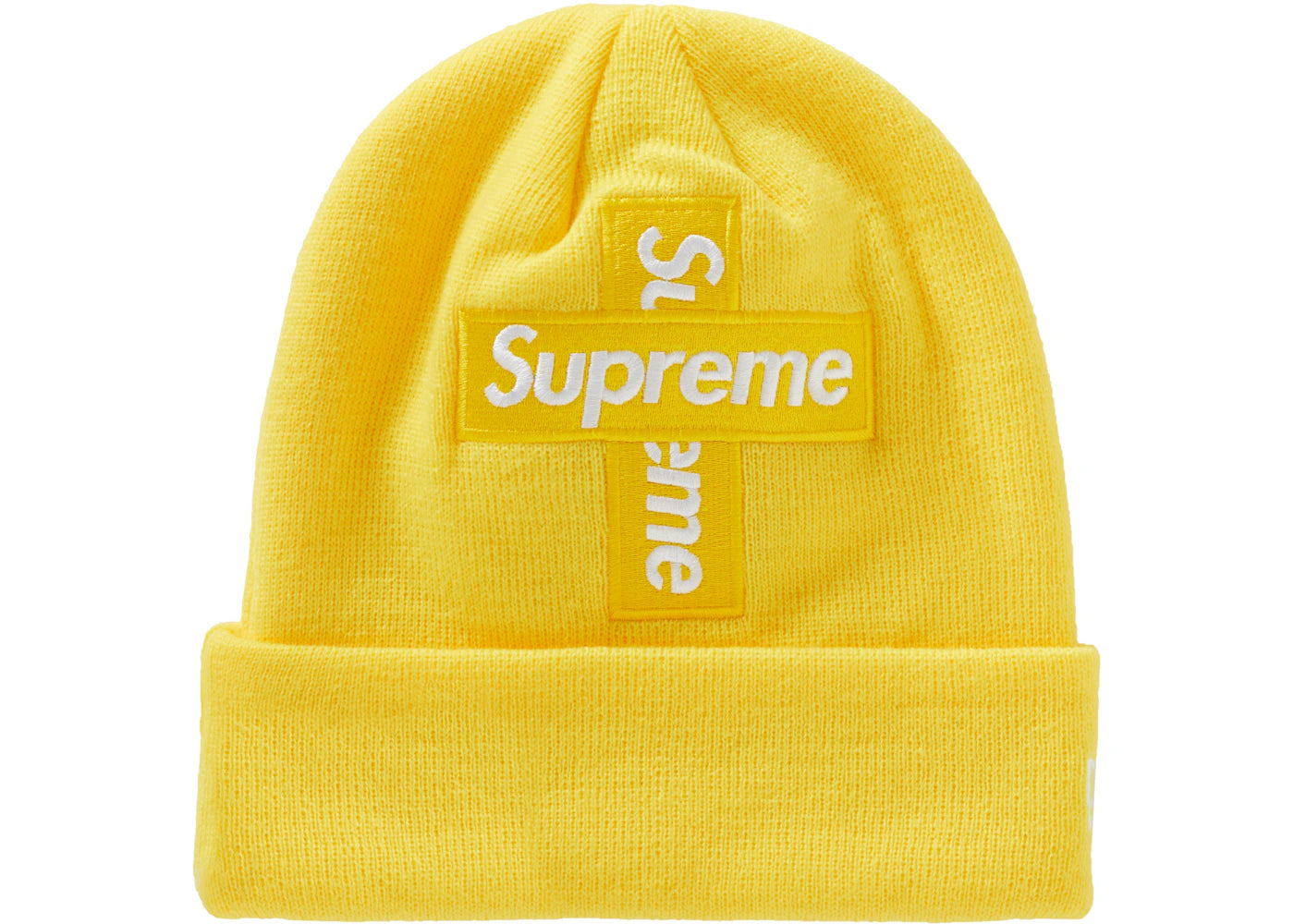 The Supreme New Era Cross Box Logo Beanie Lemon is now available at Side Kicks!