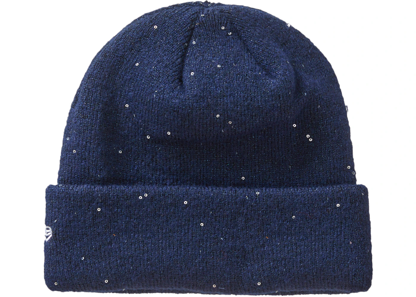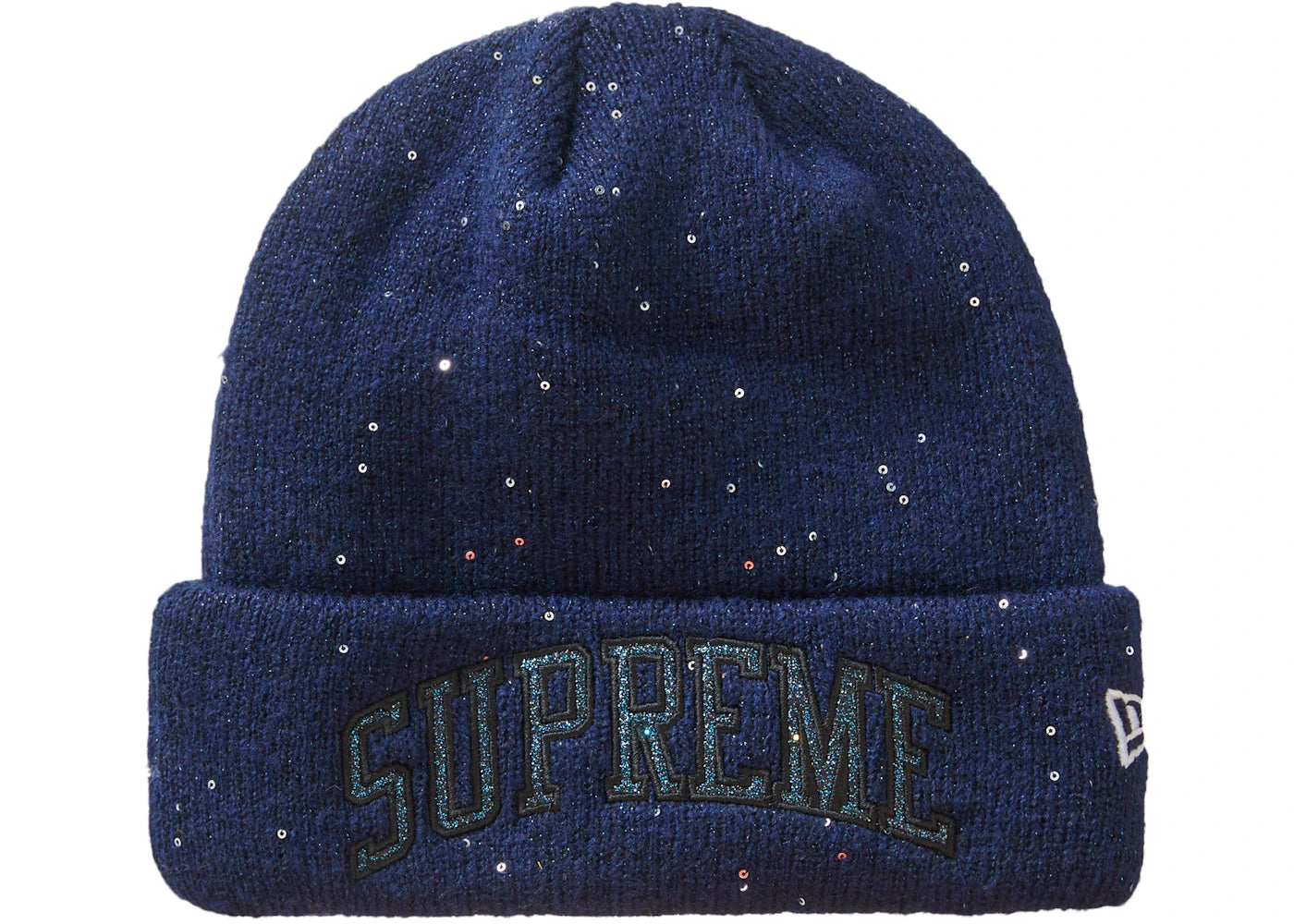 The Supreme New Era Metallic Arc Beanie Navy is now available at Side Kicks!