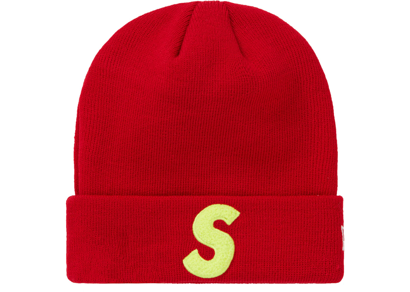 The Supreme New Era S Logo Beanie features neon contrasting colors across seven colorways. Constructed from acrylic yarn, it includes the signature S logo embroidery. Released on November 21, 2019, it is available now at Side Kicks.
