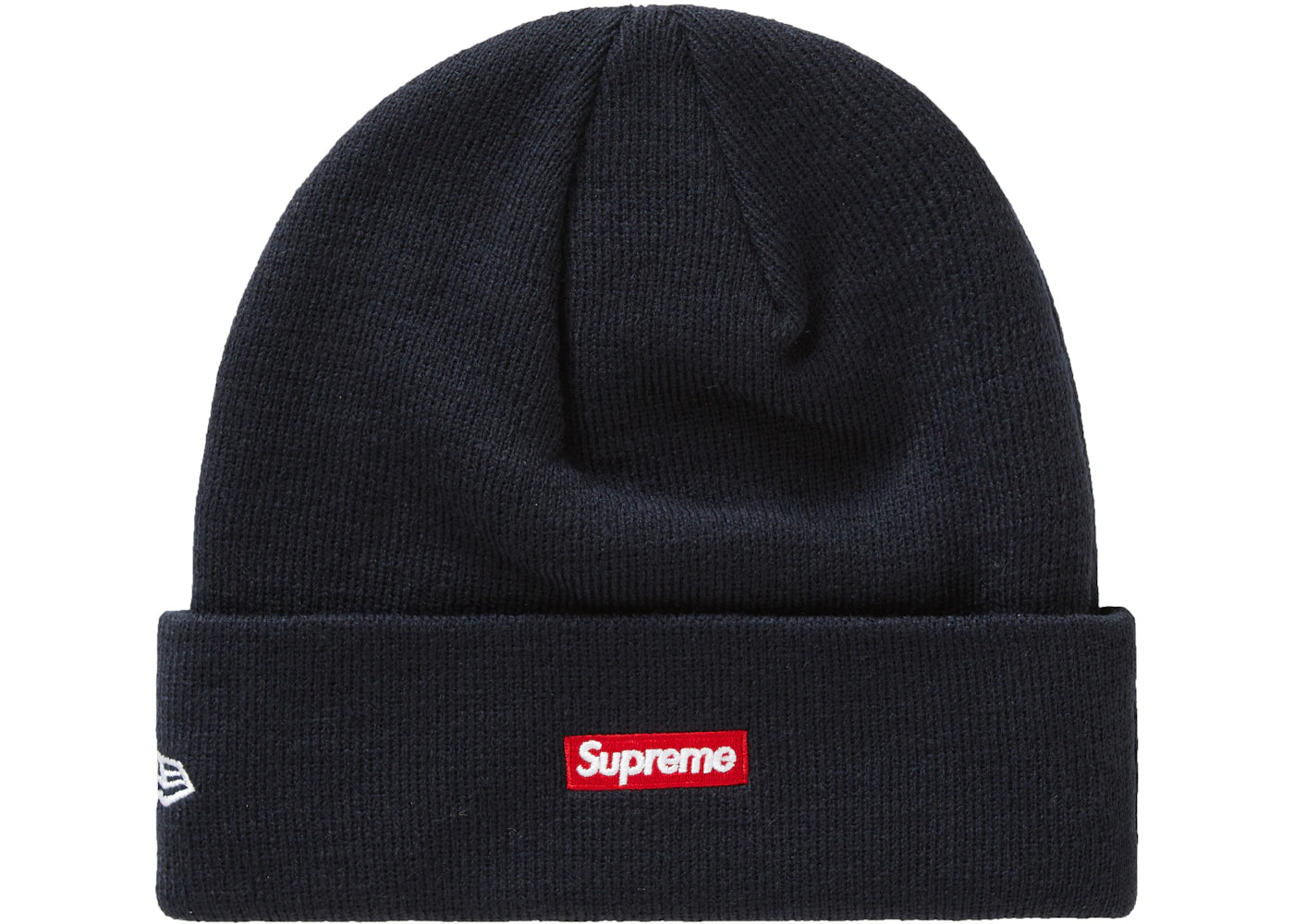 The Supreme New Era Cross Box Logo Beanie Navy features a dark navy design with overlapping box logos forming a cross on the crown. The cuff includes embroidered New Era branding and "World Famous" text in white. Made as part of Supreme's FW20 collection, it offers a functional and understated style. Released on December 3, 2020, the Supreme New Era Cross Box Logo Beanie Navy is available now at Side Kicks.