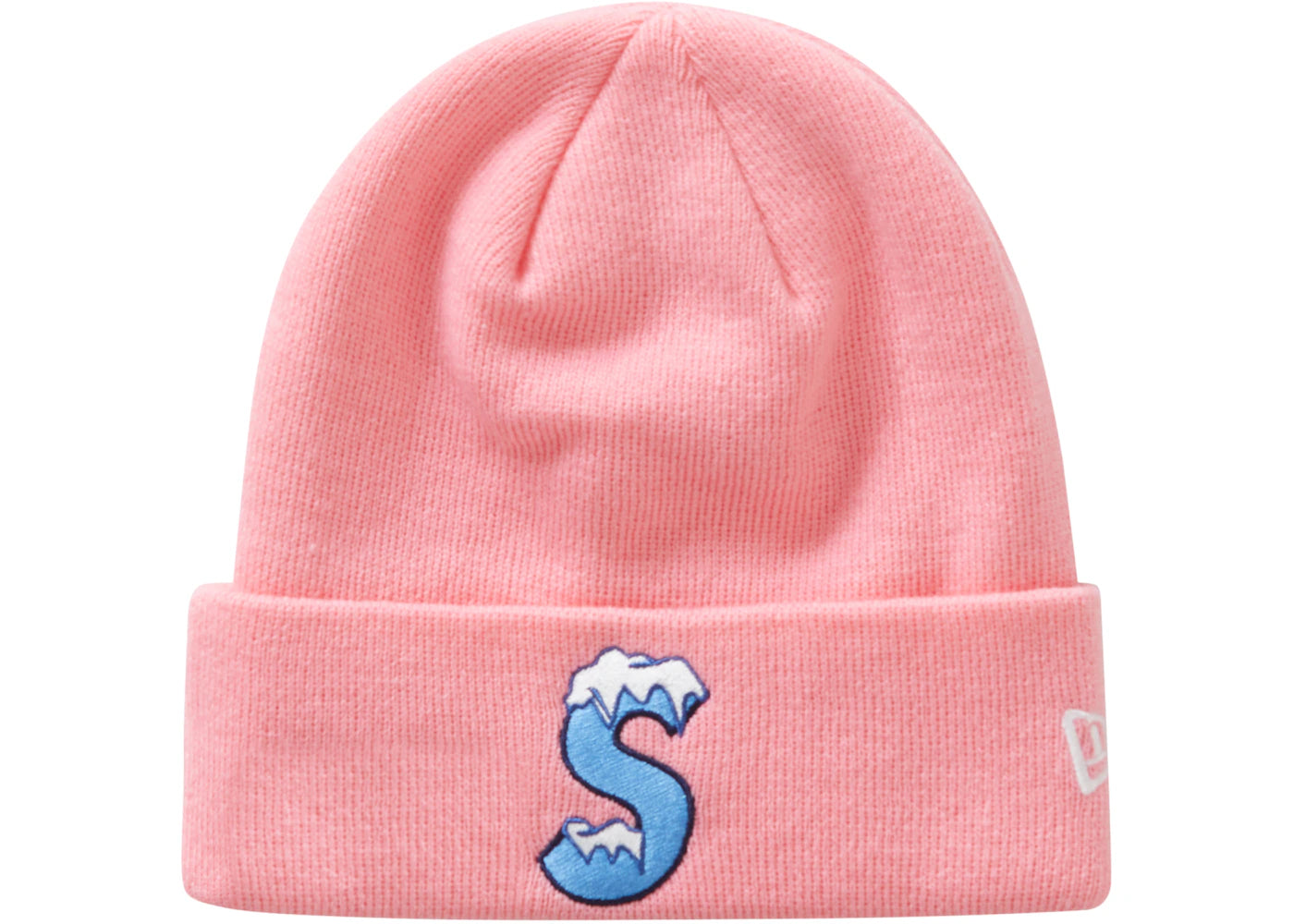 The Supreme New Era S Logo Beanie (FW20) Pink features a large blue "S" logo outlined in black, with snow and icicle detailing. Made from acrylic, it provides warmth and...