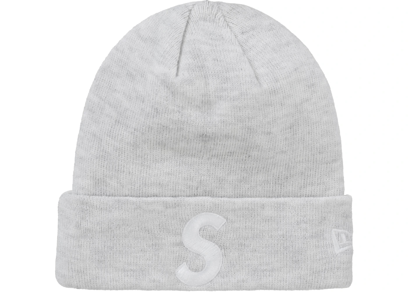 The Supreme New Era S Logo Beanie (FW24) Heather Grey is now available at Side Kicks!