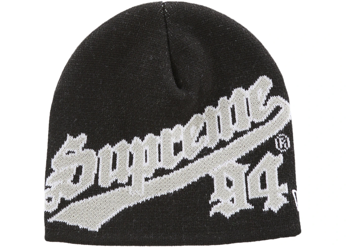 The Supreme New Era Script Beanie (FW22) Black is now available at Side Kicks!